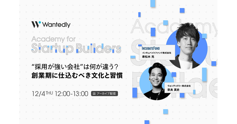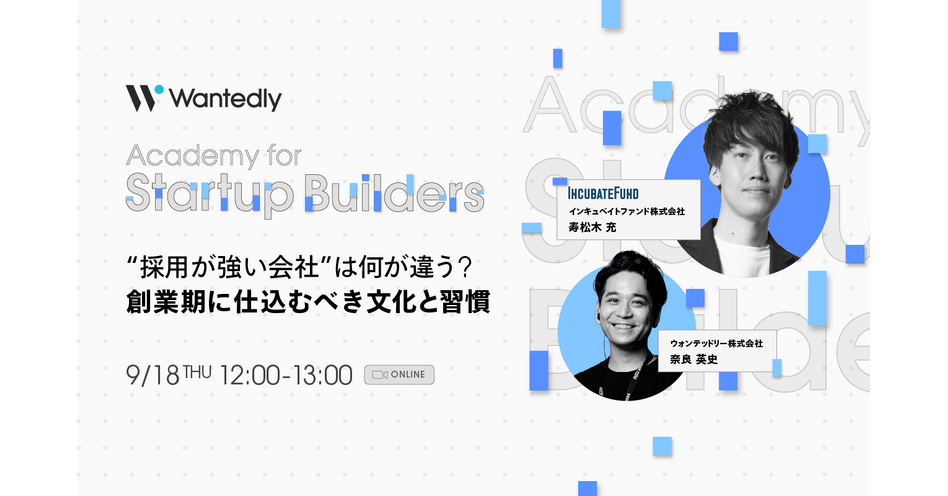 採用競争が激化するなかで、他社と差がつく組織文化・習慣のつくり方を、インキュベイトファンド×Wantedlyの視点で紐解きます。