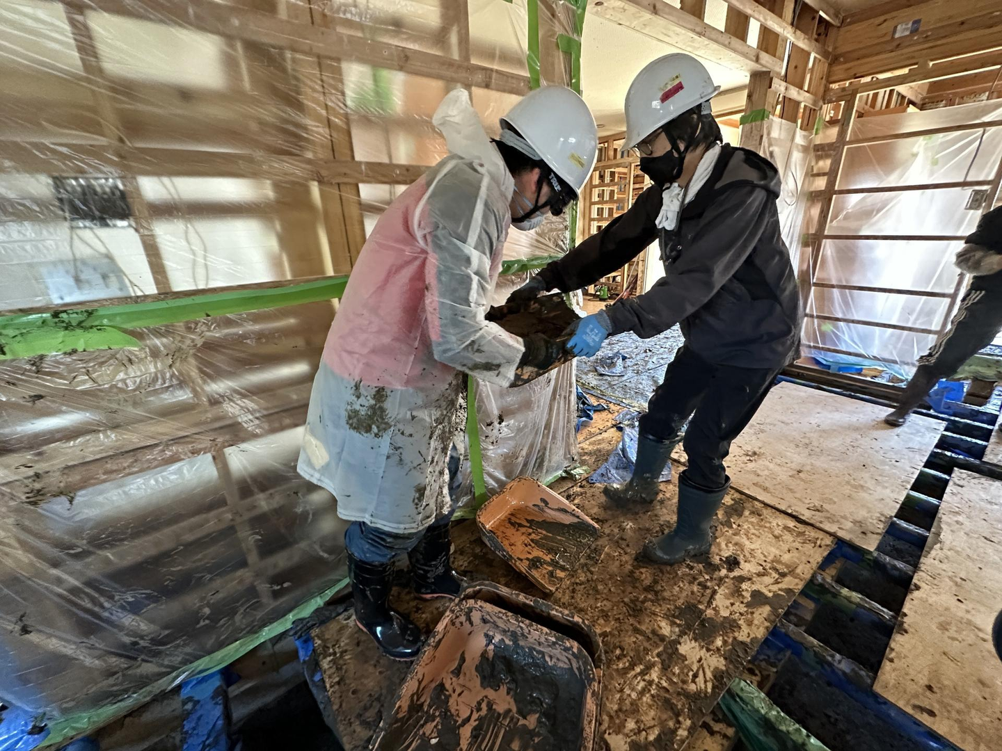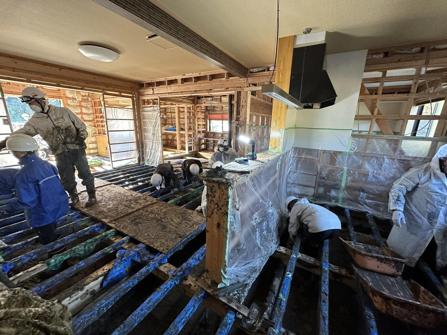 9月21日に発生した記録的豪雨による川の氾濫で床上浸水の被害を受けたとのこと。今回の作業は、その浸水によって溜まった泥の掻き出し作業になります。