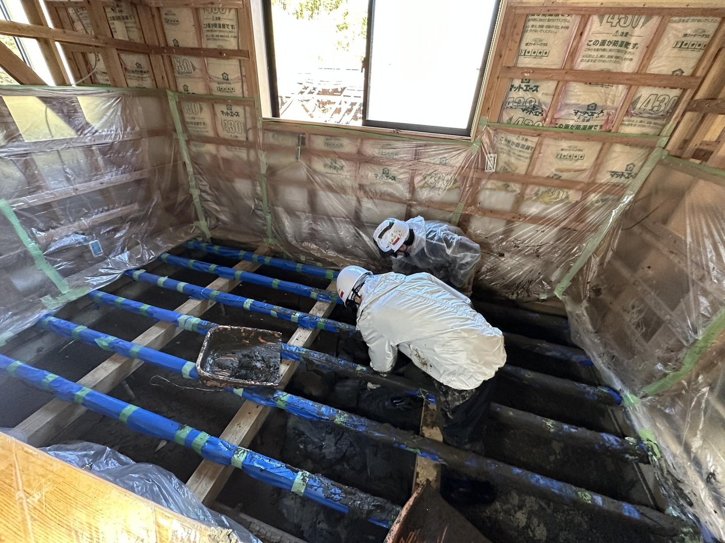 床下の木枠(根太)同士の間隔が狭く、スコップがギリギリ通る状況で重い泥を掻き出すという作業は想像以上に大変でしたが、全員が協力し合ってかなり綺麗な状態にすることができました。