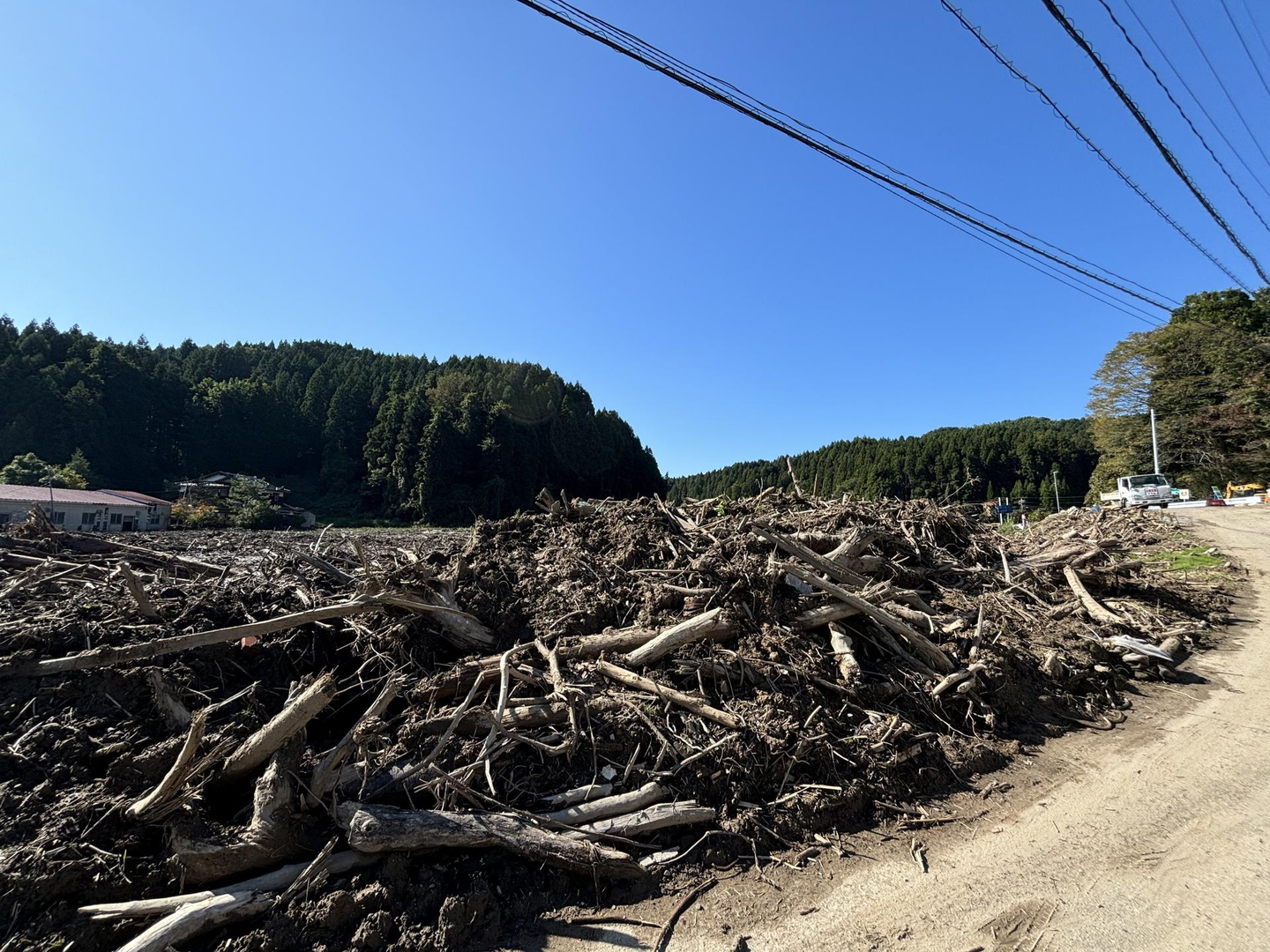 現在も流木が残る状況を目の当たりにしながら、その凄まじい水害の影響を改めて感じました。