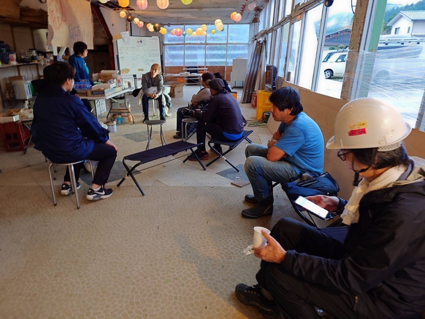 まずはじめに、阿部が今年5月に能登半島の各地の状態や、ボランティア活動の状況について話を伺った、『災害NGO結』 代表の前原土武さんから、被災地の復興状況と『結』の活動内容について説明を受けました。
