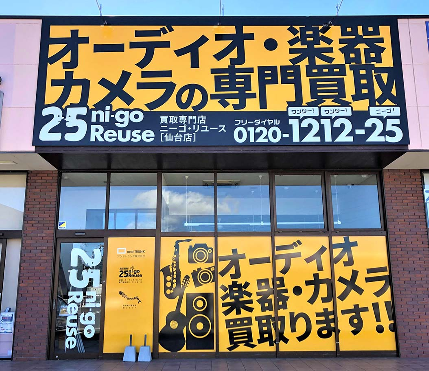 アンドトランク株式会社の主力となっている、楽器・オーディオ・カメラの買取店の「ニーゴ・リユース」。現在北海道、宮城、福島、群馬、長野、静岡、広島、福岡の全国8拠点で活動をしています。