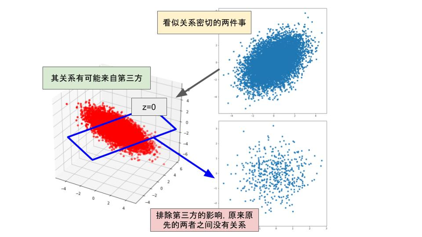 - 人口与学校数量成比例。犯罪人数与人口成比例。于是犯罪人数与学校数量成比例。不考虑人口因素只看犯罪人数和学校数量的话,会得出结论:学校教唆人们犯罪。