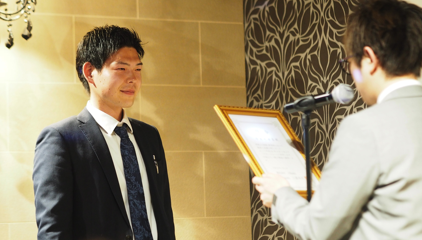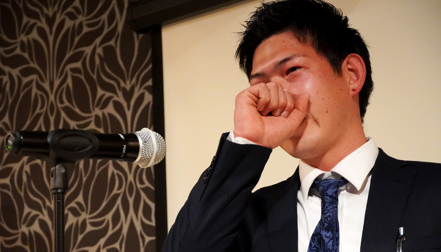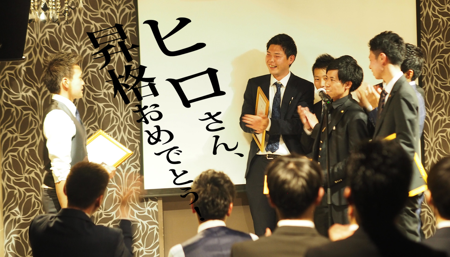4月決起会で昇格者表彰で喜びを語ったToshiyuki。