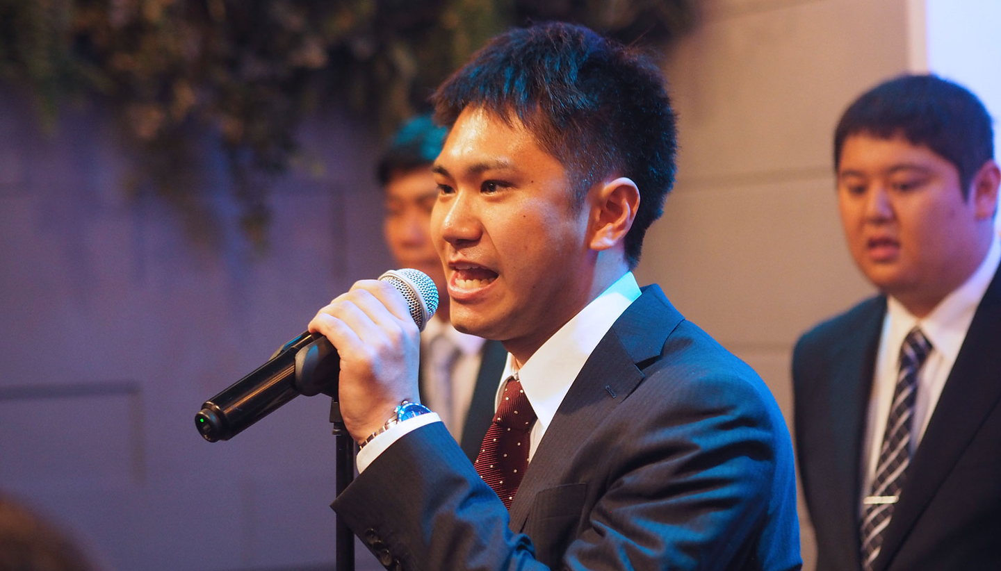 「大学ではずっとテニスをしていて、社会人1年目は不動産会社で営業をやっていました。ここに来たのは、ダメな自分を変えたかったからです。成り上がるためにこれからも頑張っていきますので、どうぞ宜しくお願いします」