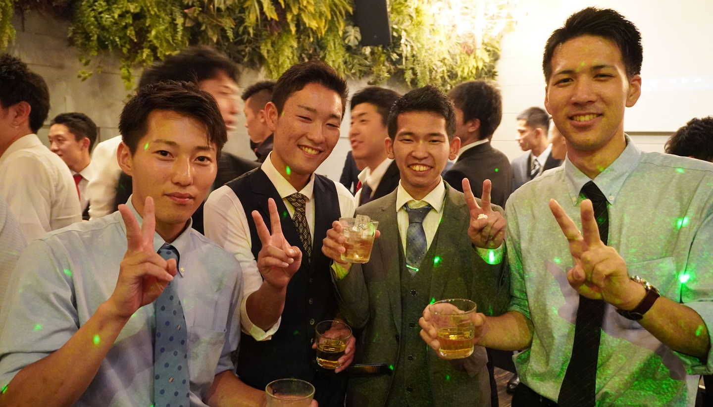 ※7月期決起会から。再会を記念して、直上の匠輝(右から2番目)や水戸支局を担当する管理部の大輝(中央)と一緒に写った1枚。皆、いい笑顔です!!