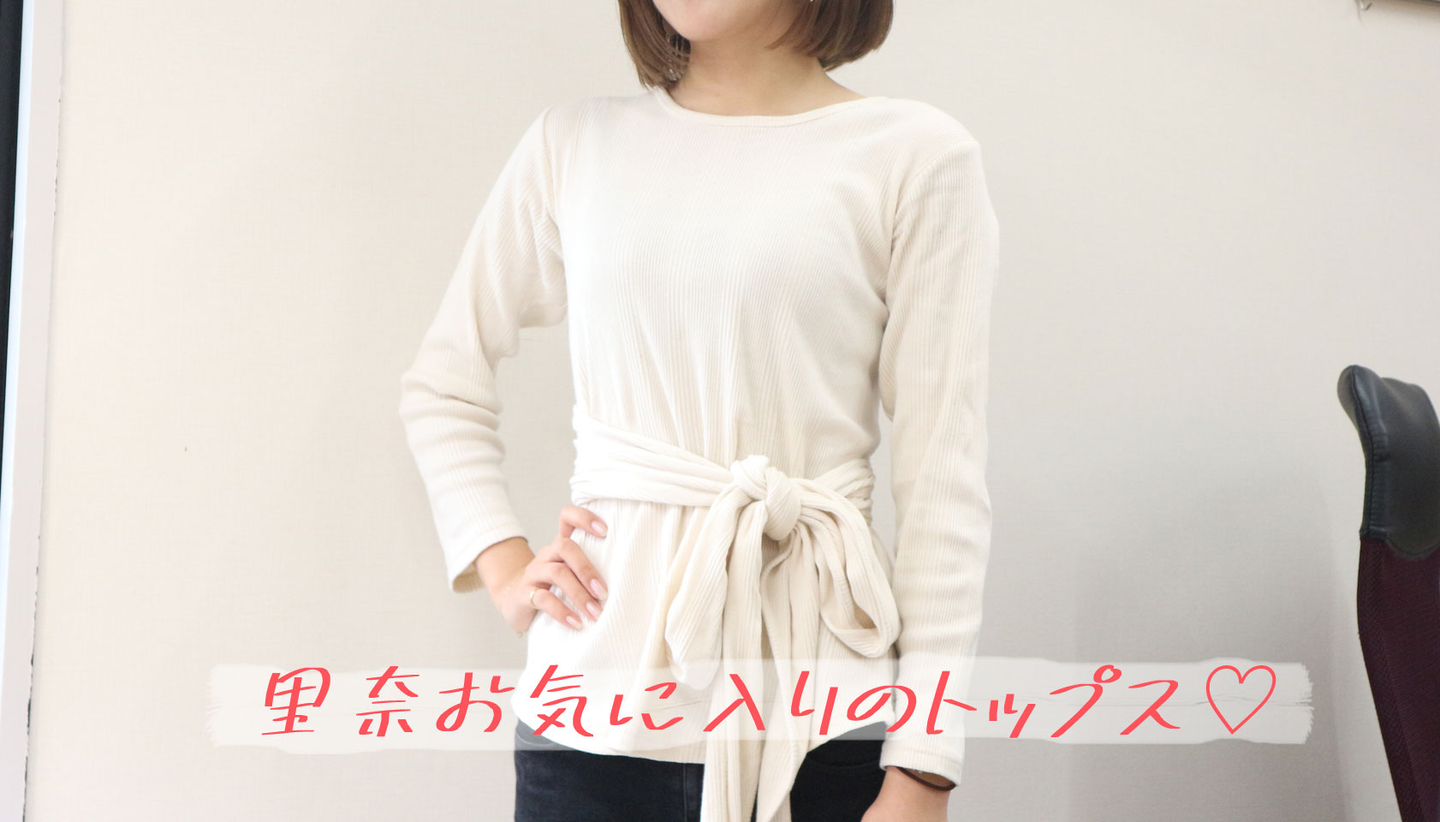 【里奈】ファッションポイント?! うーんそうだな、この白のトップスお気に入りです! 後ろでクロスして前でリボンにするんです…写真で分かるかな?(笑)