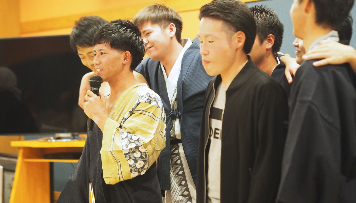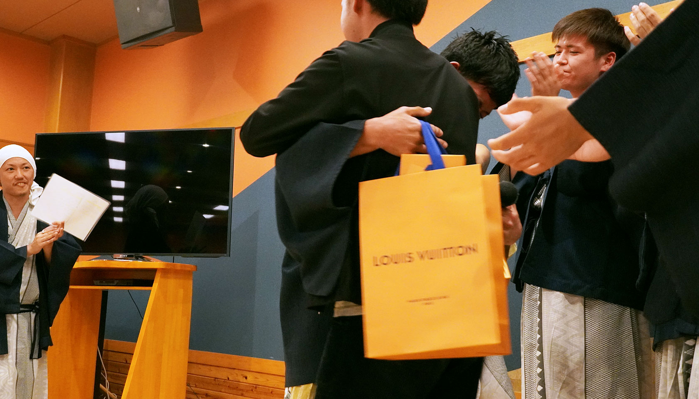 ※苦難を乗り越えてのSECTION MANAGER昇格は、ひとりで達成したものではありません。壇上に上がった彼のもとに駆けつけ、喜びをわかち合うメンバーたちに、広太は感謝を伝えました。