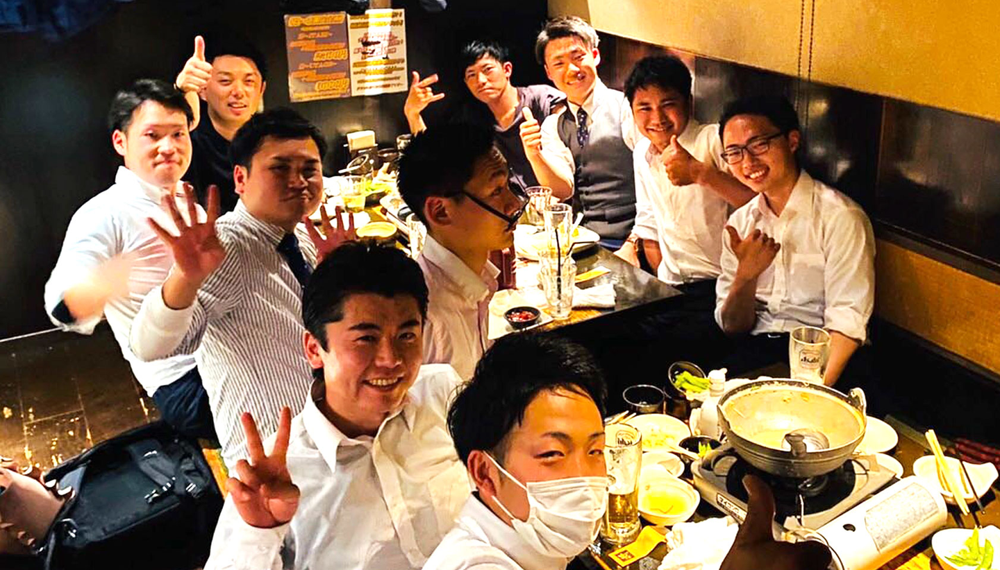※埼玉支局メンバー。左下から廣太、雄大、雄大、文人、友基、木村さん (営業本部 部長) 、広太、翔太、太一、将司。