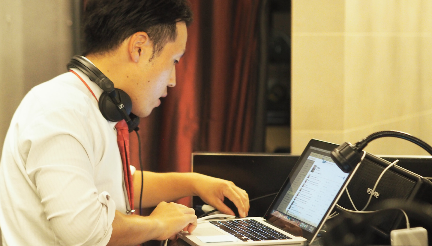 リバラボ決起会の一角、高揚とした雰囲気に合わせアップテンポな音楽を回しているDJがいます。リバラボ生の友基 (31歳) です。