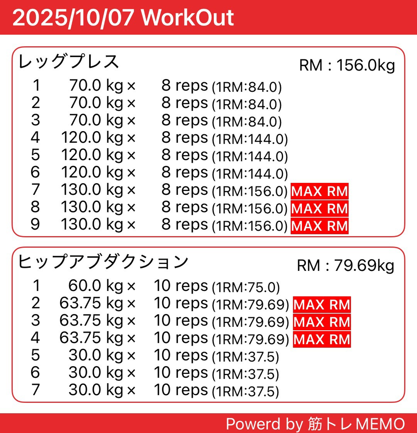 以前報告していた45度レッグプレスも今はプレート130キロまで上がりました!多分まだまだいける気がするけど、無理はしないように少しずつ重量あげてます。