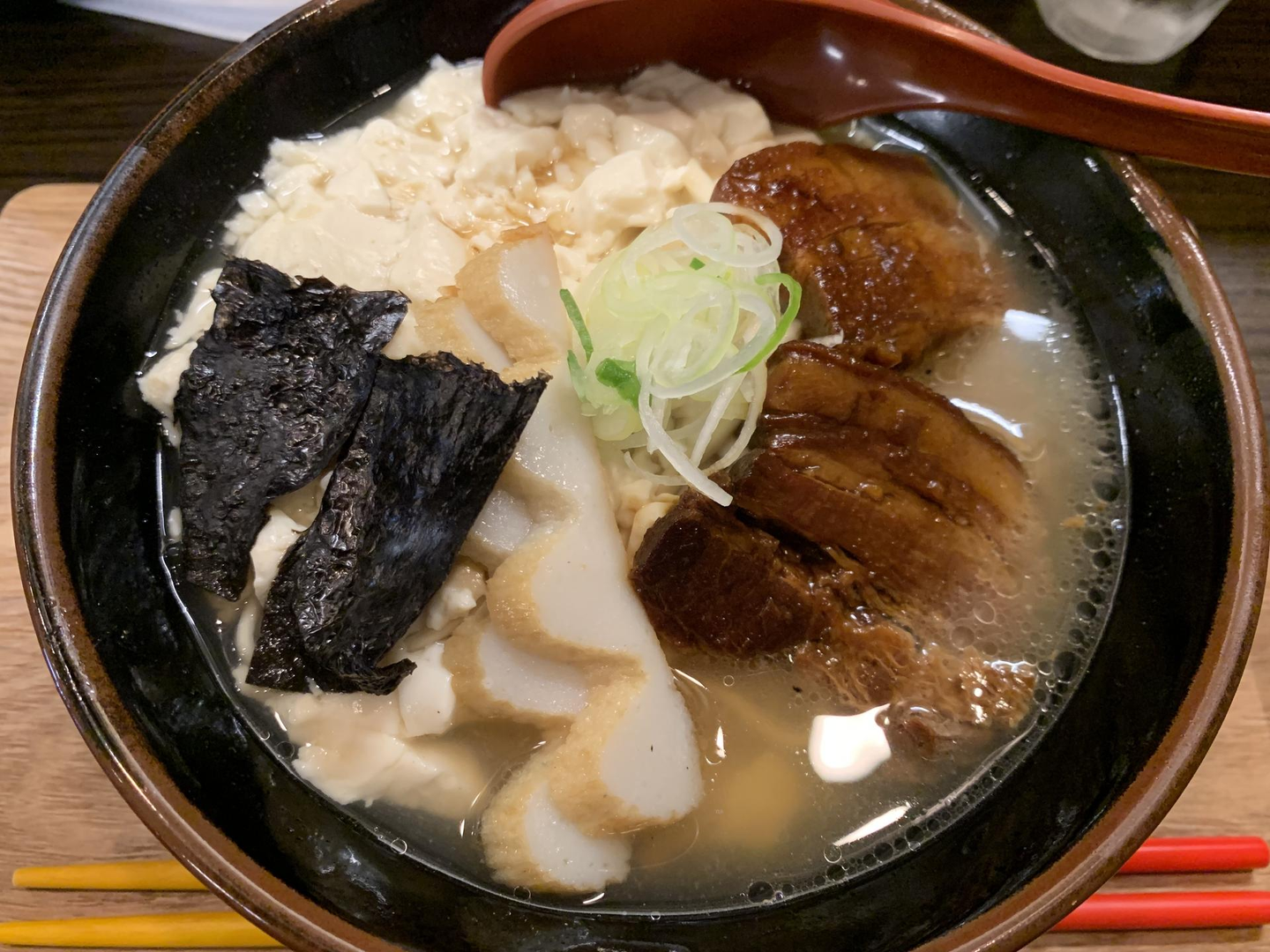 これは、オフィスから歩いて10分弱くらいでしょうか。「こどら」というお店の沖縄そば。そのなかでも「ゆし豆腐」をいただきました。プライベートで沖縄を訪問したときに、道の駅などでゆし豆腐定食などはいただいていたのでゆし豆腐のおいしさは実感していたのですが、こうやって沖縄そばにトッピングされているのもとても良いです。今回もきっと訪問すると思います笑