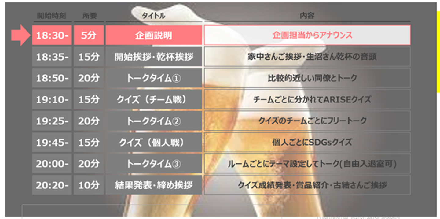 - 「チーム外交流でARISEの一体感にTORIHADA!」がテーマの、とにかく交流しまくる2時間