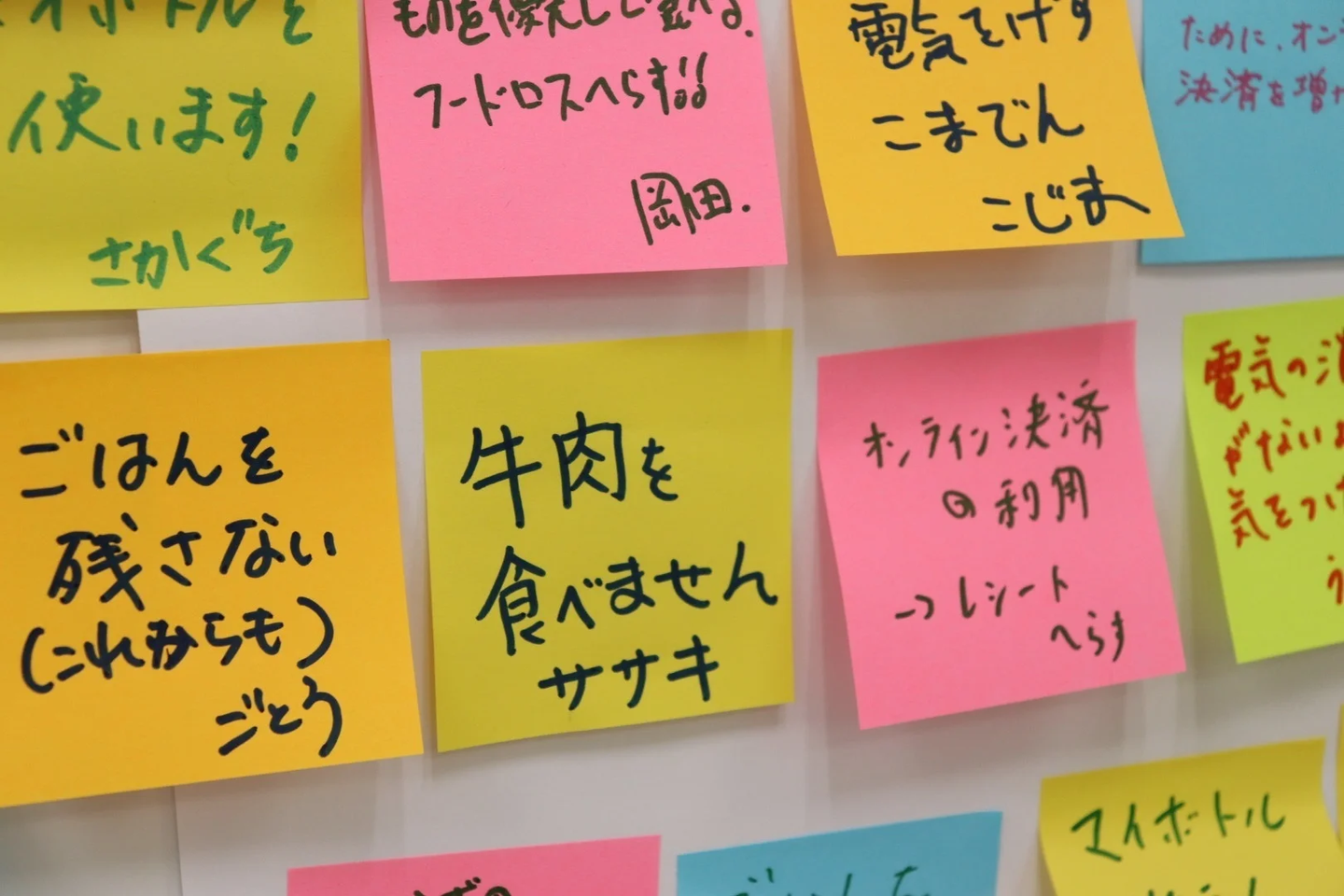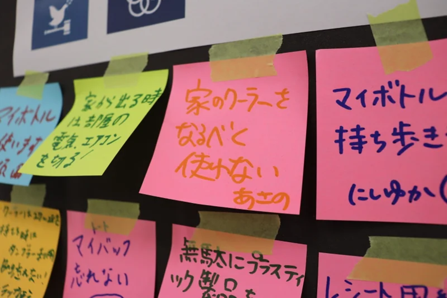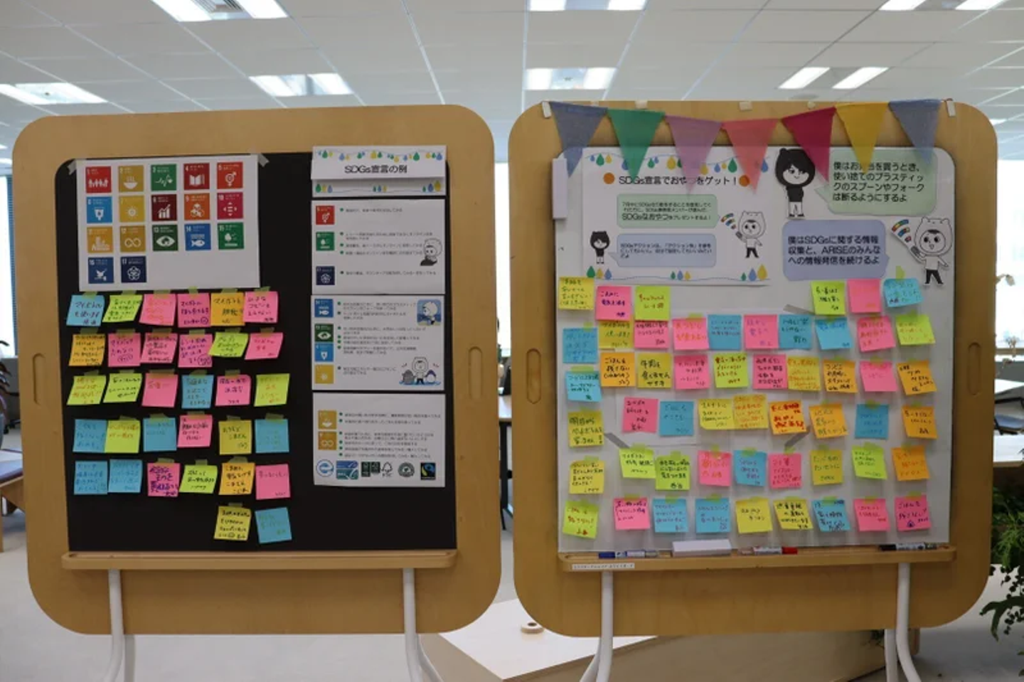 この狙いが奏功して(!?)色んな社員が「自分だったら何が出来るか…?」考えながら、付箋にSDGs宣言をしていました。