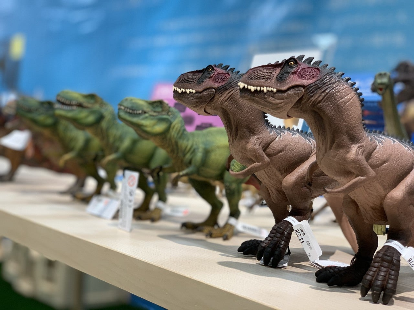 TSTさんのクロマグロ2mのぬいぐるみ(4万円+税)とか、カエルのぬいぐるみを始め、恐竜のフィギュア各社(元ボーネル○ドとしては感慨深いサファリ社のフィギュアと再会しまして涙)や今回新しく別事業で営業サポートを行う事となったデジコロ などのデジタルトイ、あとは通常業務のイベント事業でお世話になってる各ワークショップキットの販売元の通常品を取り揃え、店舗としてはかなり特殊な感じになっていると思われます。