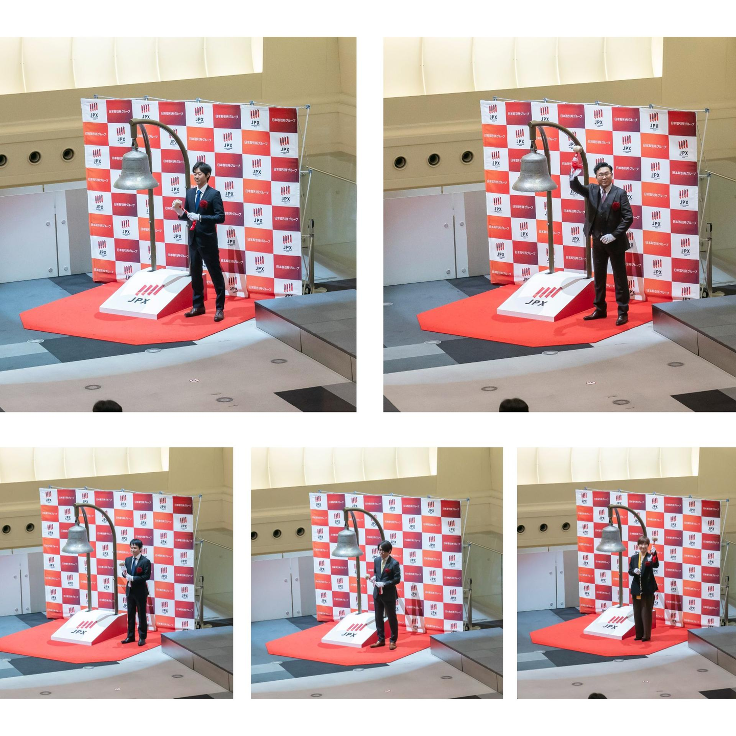 上場通知書の贈呈の後は記念撮影を行い、いよいよ「鐘打(しょうだ)」です!