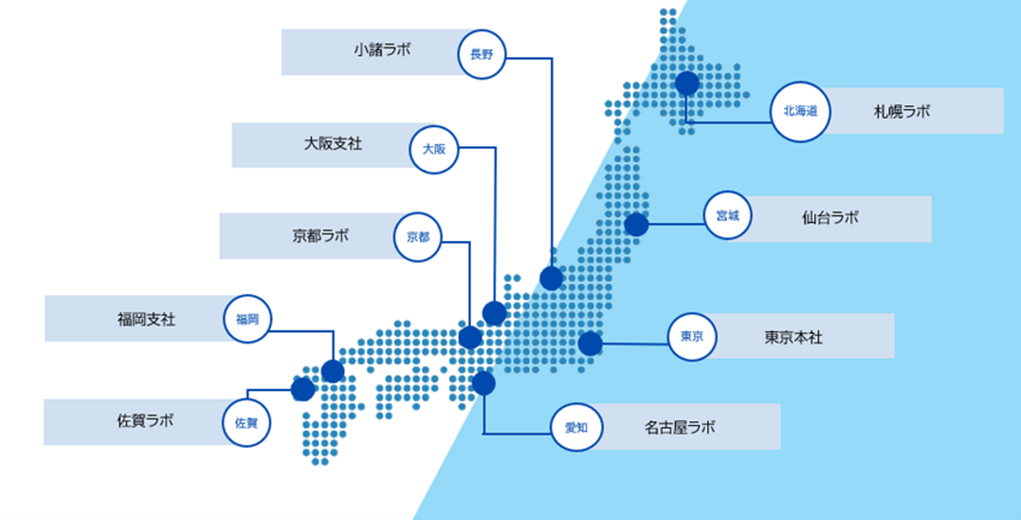 その手段のひとつとして、全国各地に支社やラボを展開しています。