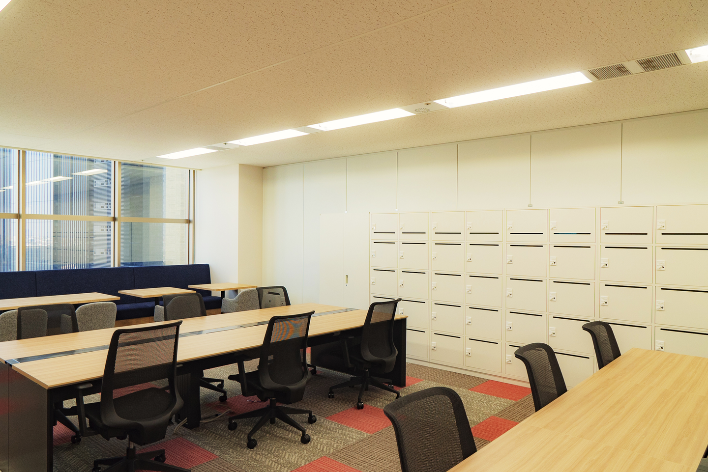 社員の鍵付きロッカーも用意。業務が終わったらここにPCや資料等を安心して仕舞えるようになっています。