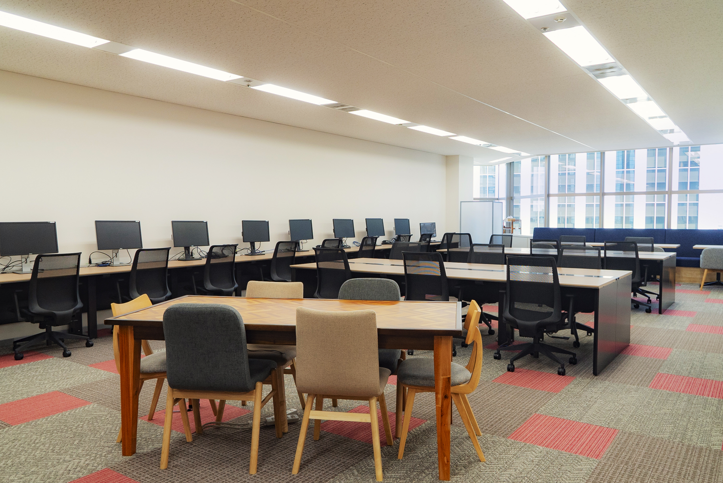ノートPCのみ使用の方は自由に空いている席に座れますし、モニターを使いたい人用にはモニター設置席も用意しました。好きな席で仕事ができるようになっています。