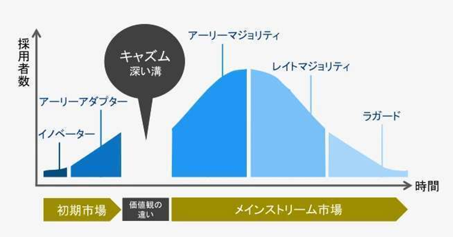 ここ1−2年既存事業を任せて、新規事業を担当する中で強烈に意識したことは僕を含む起業家は市場の始まりに注目しやすく、実際よりも早くマスに達すると想定しがちである、ということだ。また市場がマスに到達するに連れてこれまでの会社も変わっていかなければならない。僕からすると「もうみんなずっとYouTubeしか見てないっしょ」と思いがちではあるが、実際の台湾でのYouTube広告市場でいうとようやくキャズムを超え始めたところのようだ。既存事業が結果的に伸びたのが、適切な人材に任せれた要因も大きい。起業家の多くがファーストペンギンか、ファーストペンギンを見て動くと思うが、キャズムを超えるタイミングがどこか、それに合わせてどうスケジューリングしてどういう人材に任せるかの検討は成功するかどうかに大きく影響する。僕らはちょうどマスに達するところで適切なメンバー交代ができた。