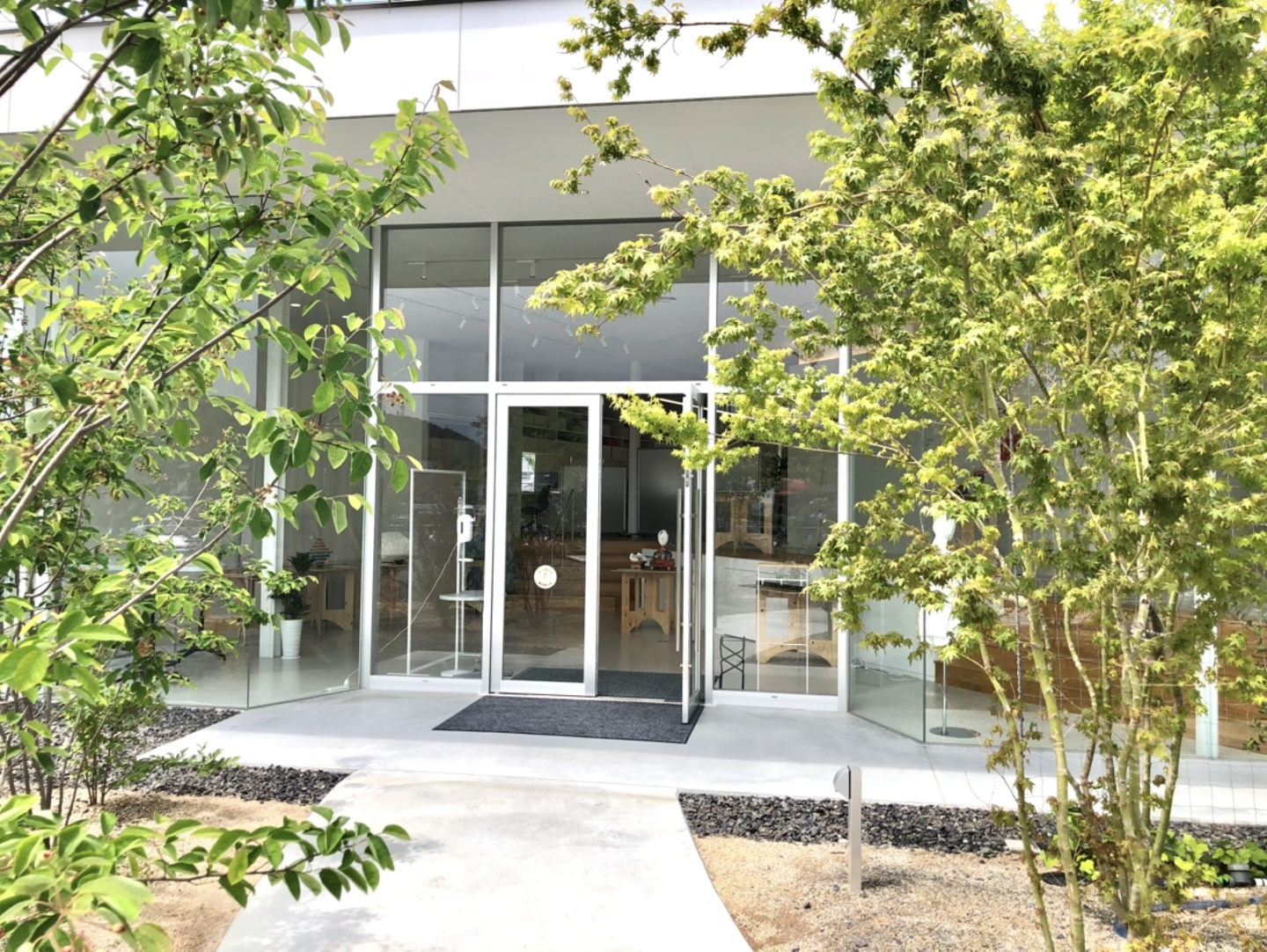 外観は森のように木に覆われ、入り口側は全面ガラス張り。開放感があり快適な空間です。