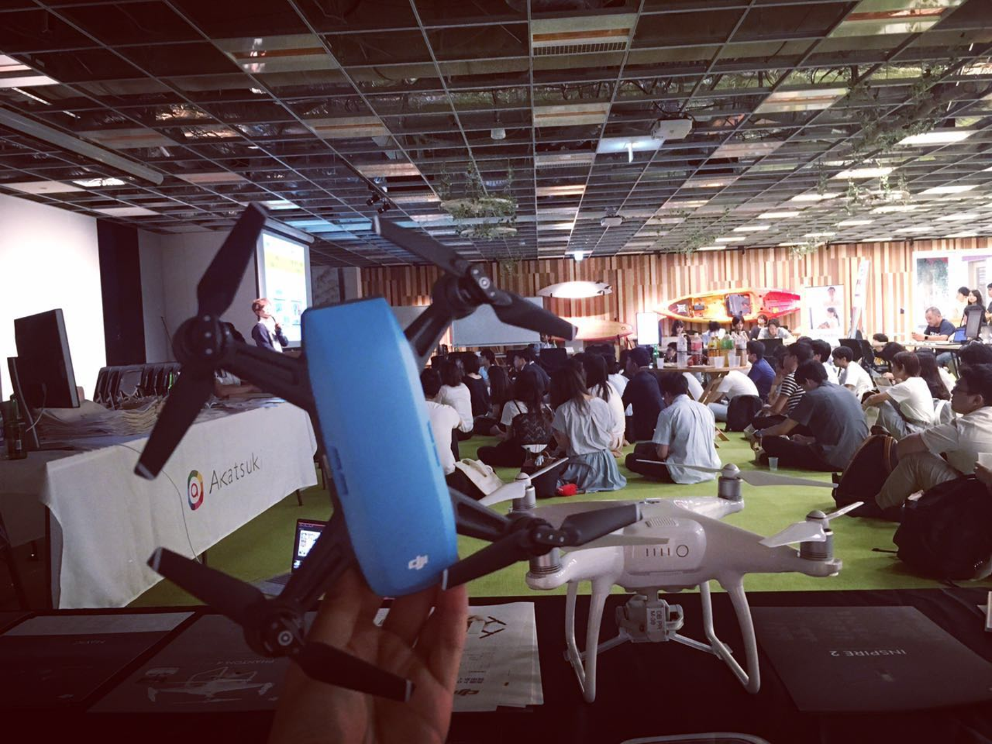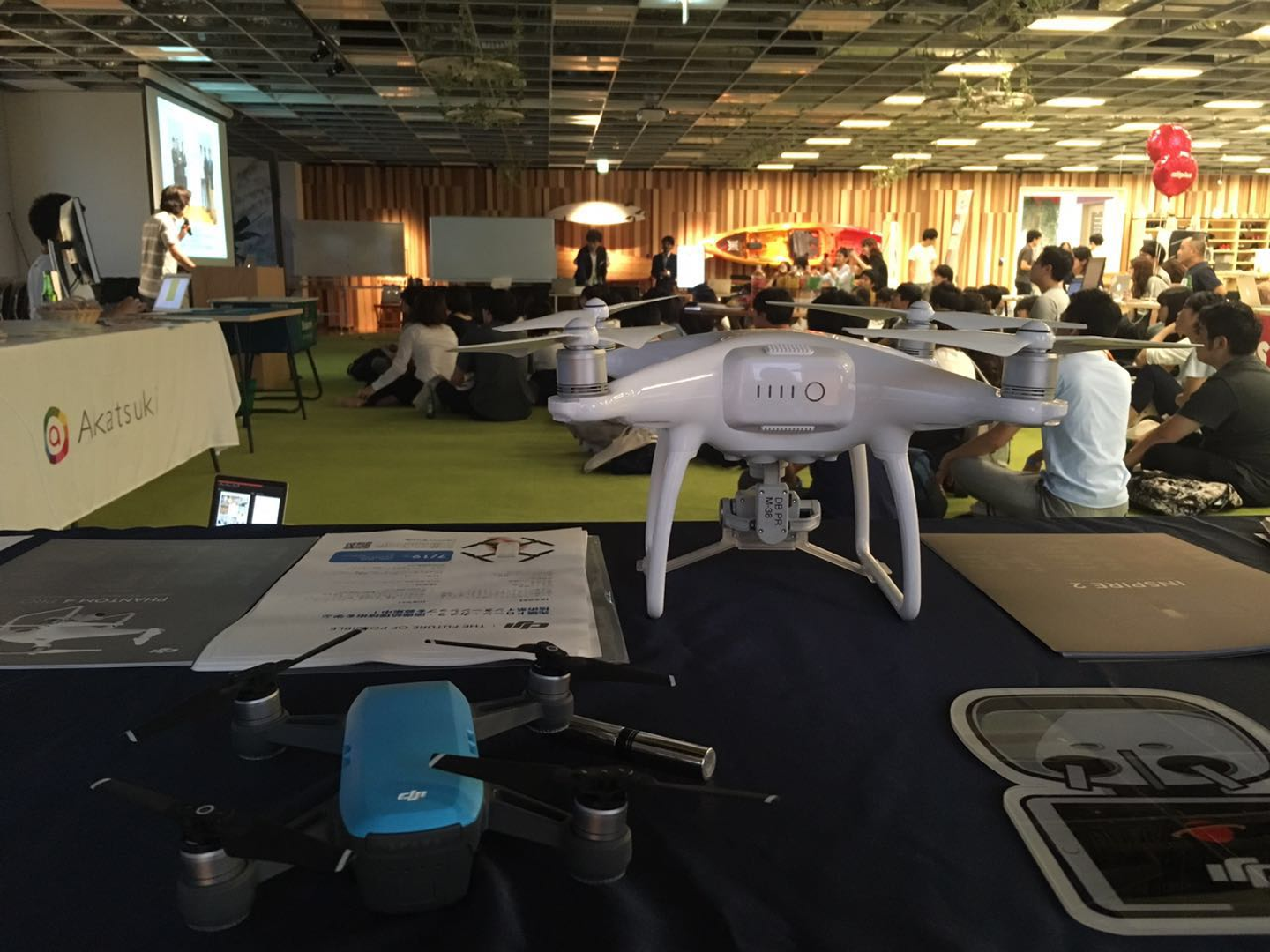 弊社ドローンSPARK, Phantom4を展示しました。DJI JAPANのビジネス紹介、ドローン空撮などいろいろお話させていただきました。