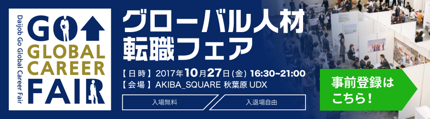 Daijobキャリアフェア @10/27(金) 16:00~ 秋葉原UDX