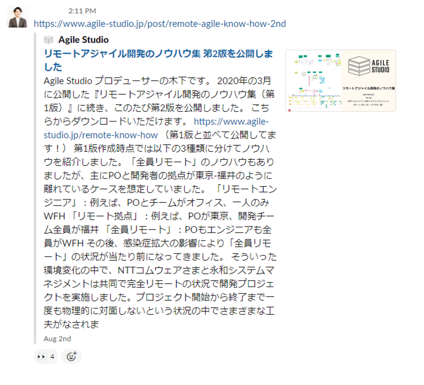 ※今回のストーリー用にSlackに表示される社員の名前を伏せていますが、普段はきちんと見えています!
