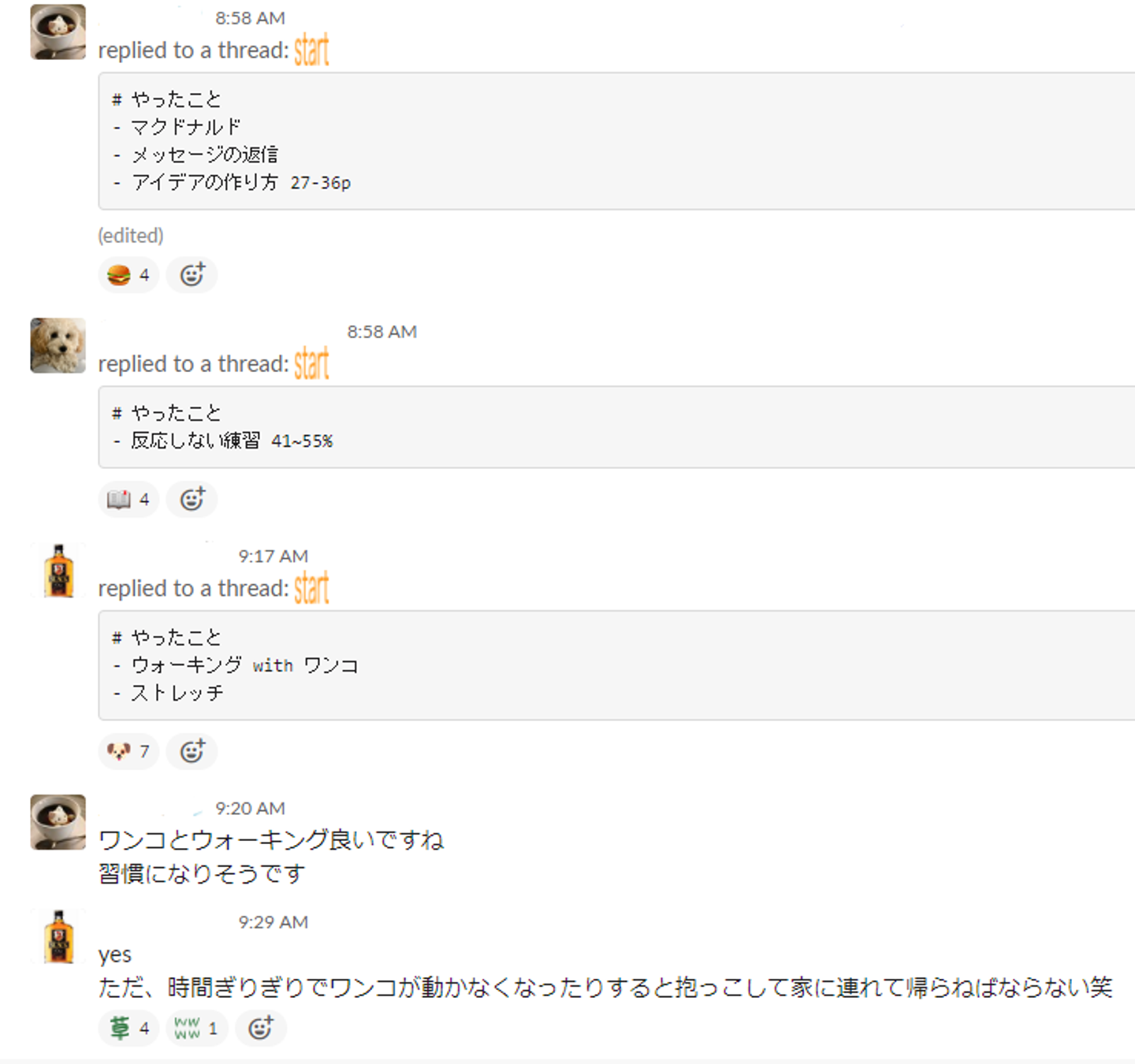 このようにウォーキングや洗濯など学習以外のこともあげてる社員もいるので気軽に参加できます!