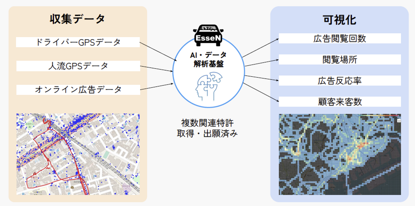 同社では広告をラッピングした車両の走行データと膨大な人流データをAIによって分析し、広告効果を可視化していることが事業としての競争優位となっています。