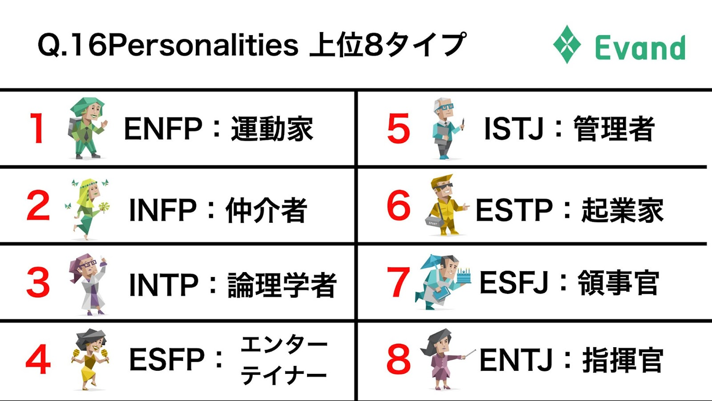【MBTI診断】Evandメンバーに、「MBTI診断やってみませんか!」と声をかけたら、100名以上が答えてくれたので、結果をまとめてみました!