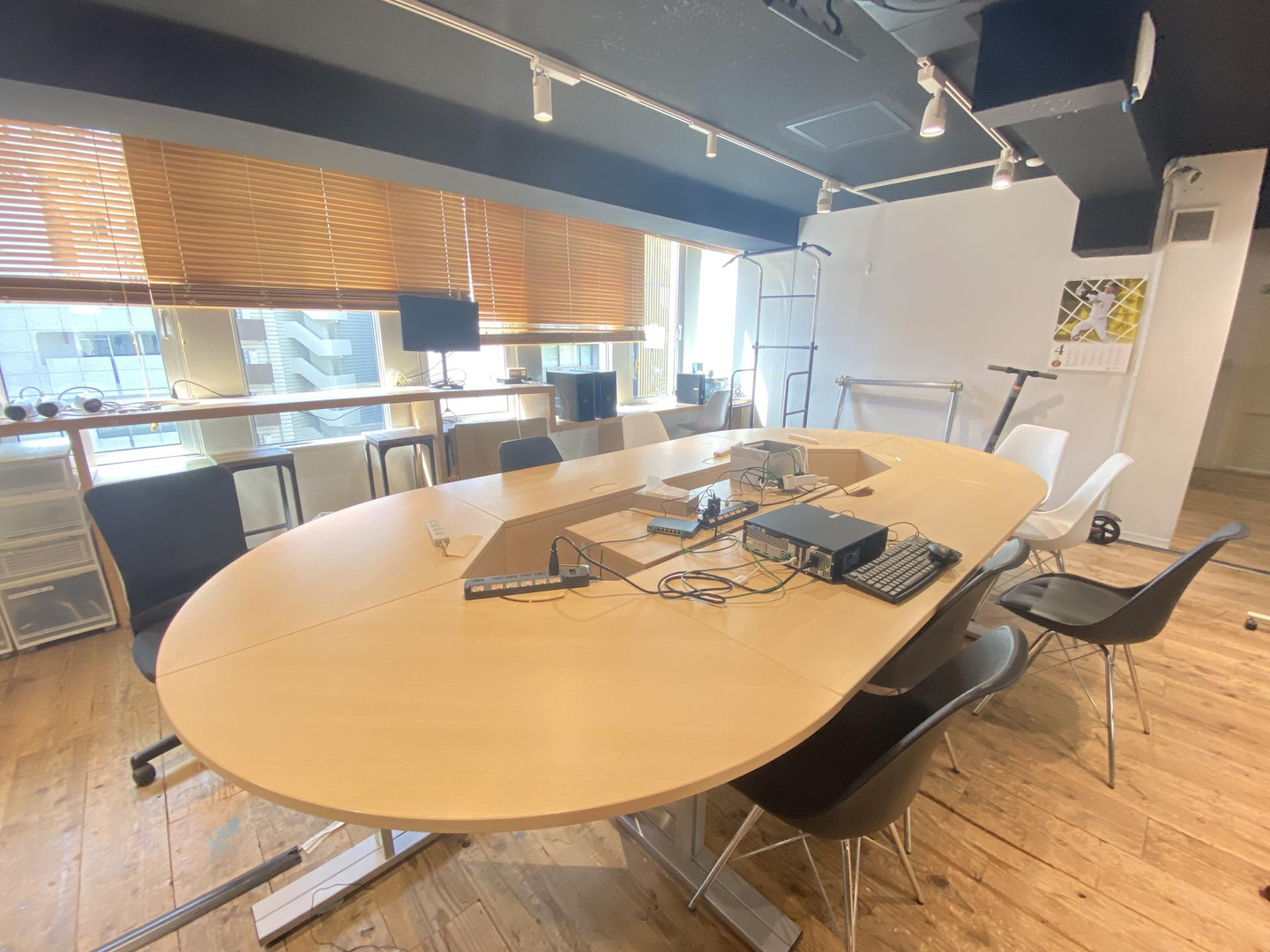 会議室の奥には、楕円テーブルがあるスペースがあります。こちらはフリースペースとなっているのですが、窓際には製品テストのため機材等が置かれていることが多いです。