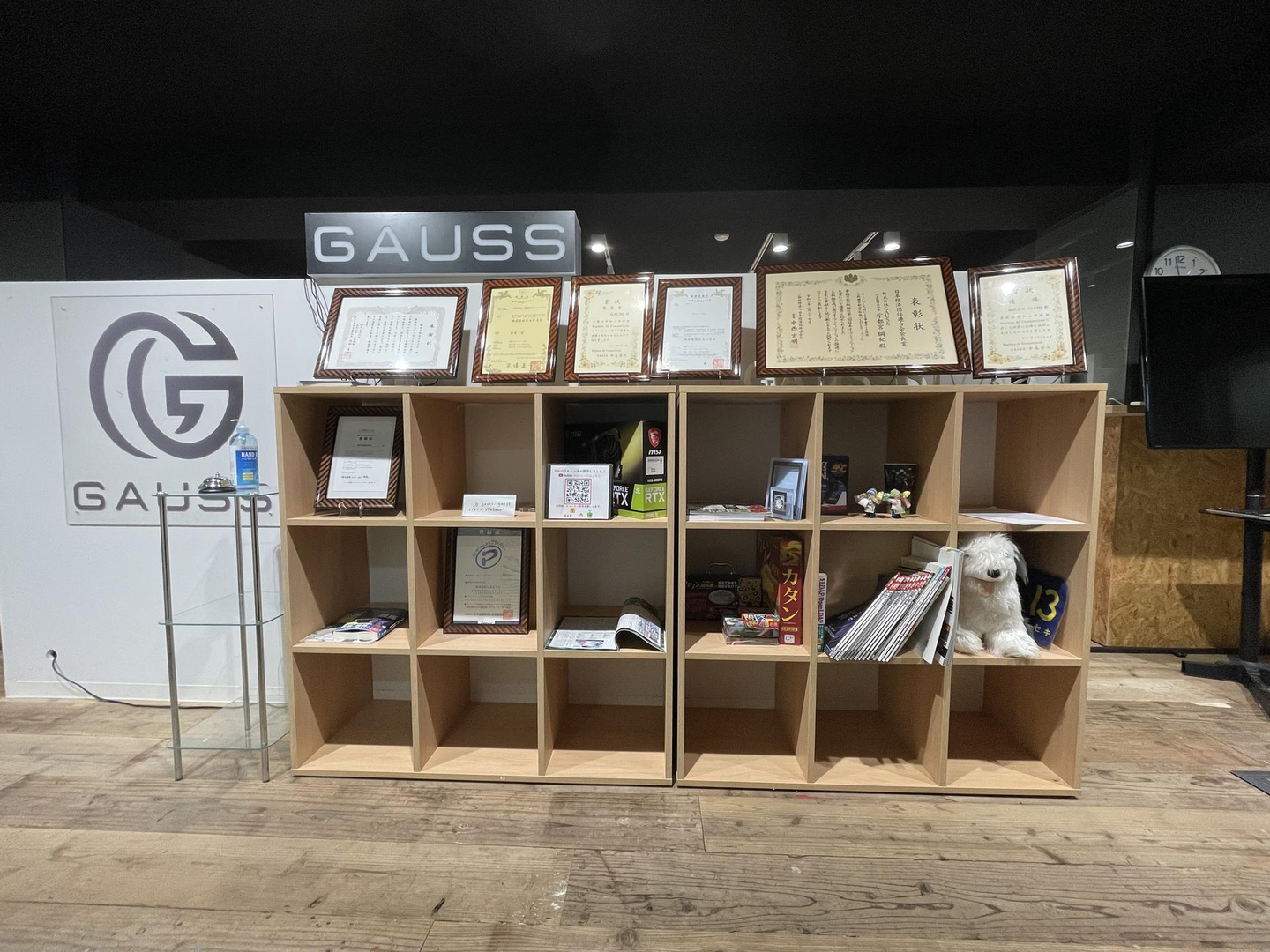 玄関を通ってすぐにGAUSSが受賞してきた賞状が並んでいます。