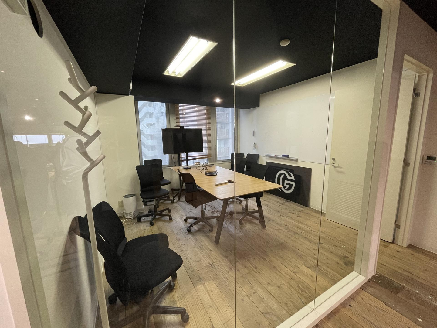 そのまま進むと、会議室があります。こちらでは、打合せや面接などを行っています。ガラス張りになっており、打合せや面接の様子がよく見えます。開放感があって良いですね。
