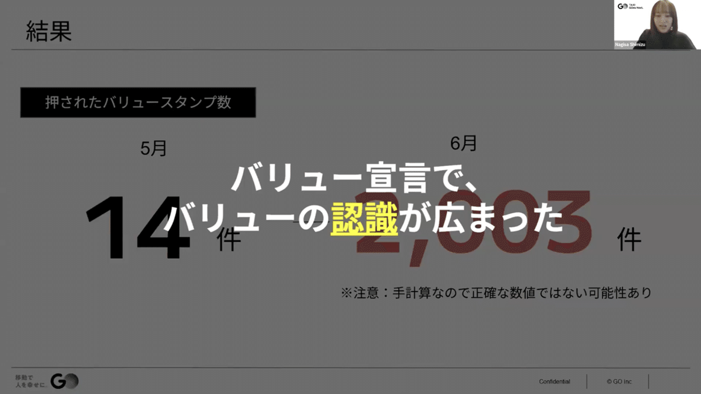 もし、ポイントがあるとしたら一番キャリアの浅い私が動いたこと。バリュー宣言も私から動いて、上長やGMからフィードバックを得ることで、本気度が伝わった部分はあるのではないでしょうか。