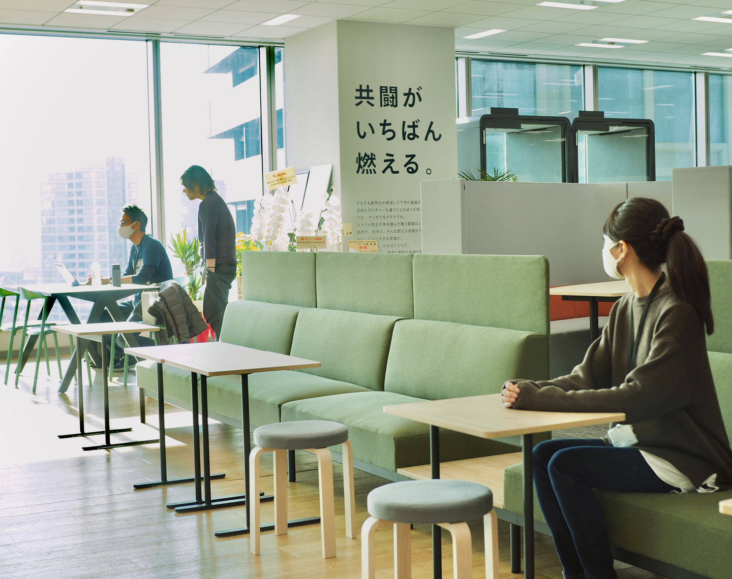 リモートワークが定着し、SlackやZoomを使えば出社しなくても集中して仕事に取り組めることが分かった一方で、方向性や心のモヤモヤをパッと相談するなど対面コミュニケーションのほうが良いこともあったります。他にも、子どもがいたり、旦那さんと席を取り合ったり(笑)、自宅だとやっぱり集中できない人も少なからずいて。