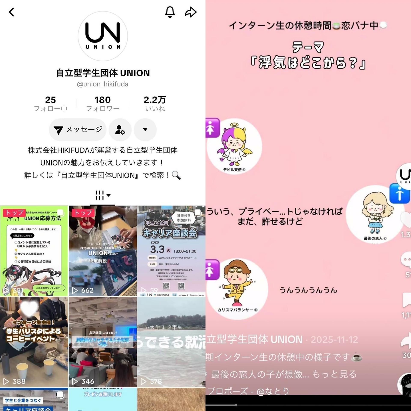 UNIONが行った活動の広報以外にも、Tiktokで流行している企画にも挑戦しています!
