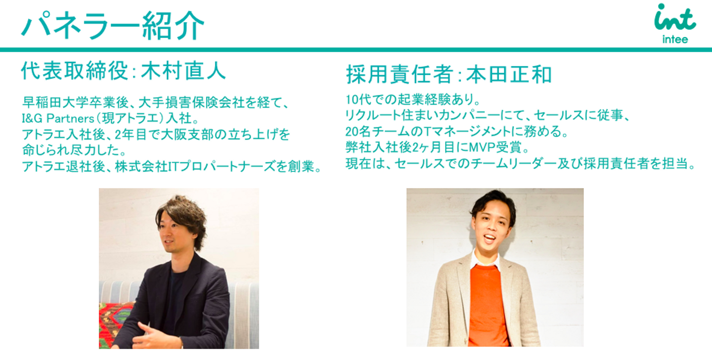 パネルディスカッションでは、弊社代表木村と採用責任者の本田が登壇しました。