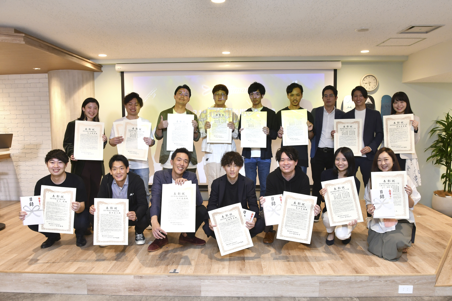 Hajimariでは、半期に一度全社員が集う社員総会が行われます。代表木村による、半期の振り返りと今後への抱負についてのプレゼンに始まり、半期を通じて活躍・努力した社員を称える表彰式、Hajimariへの入社を決意した新卒の内定式も兼ね、盛りだくさんとなりました。