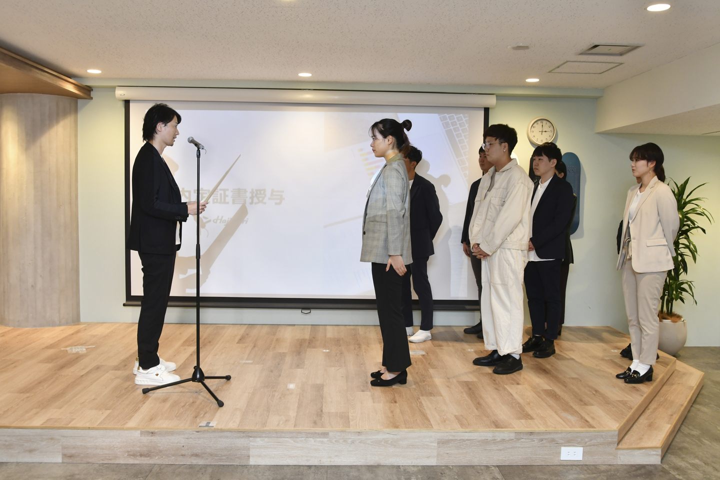 内定式では、内定者たちが、全社に向けて自己紹介プレゼンを行います。