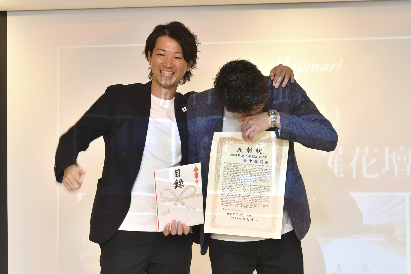 事業部長として、会社を支える一人のメンバーとして大きな功績を残したことに対し、社員全員からの盛大な拍手とともに、2021年度上半期のもっとも栄誉ある賞の受賞が行われました。