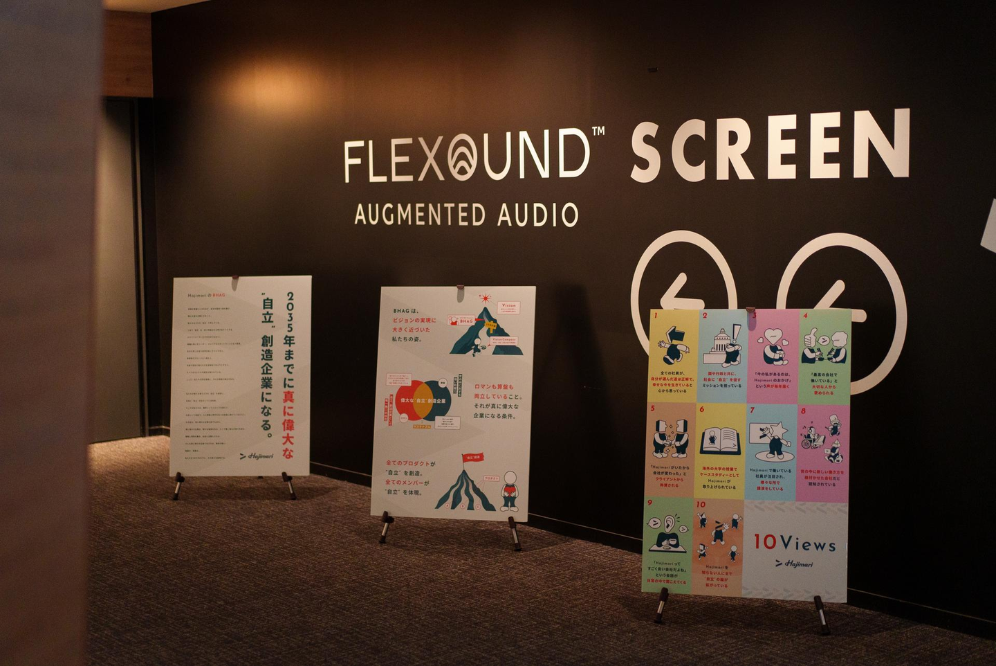 スクリーンまでの道にはHajimariの「BHAG」「10Views」が掲げられていました。