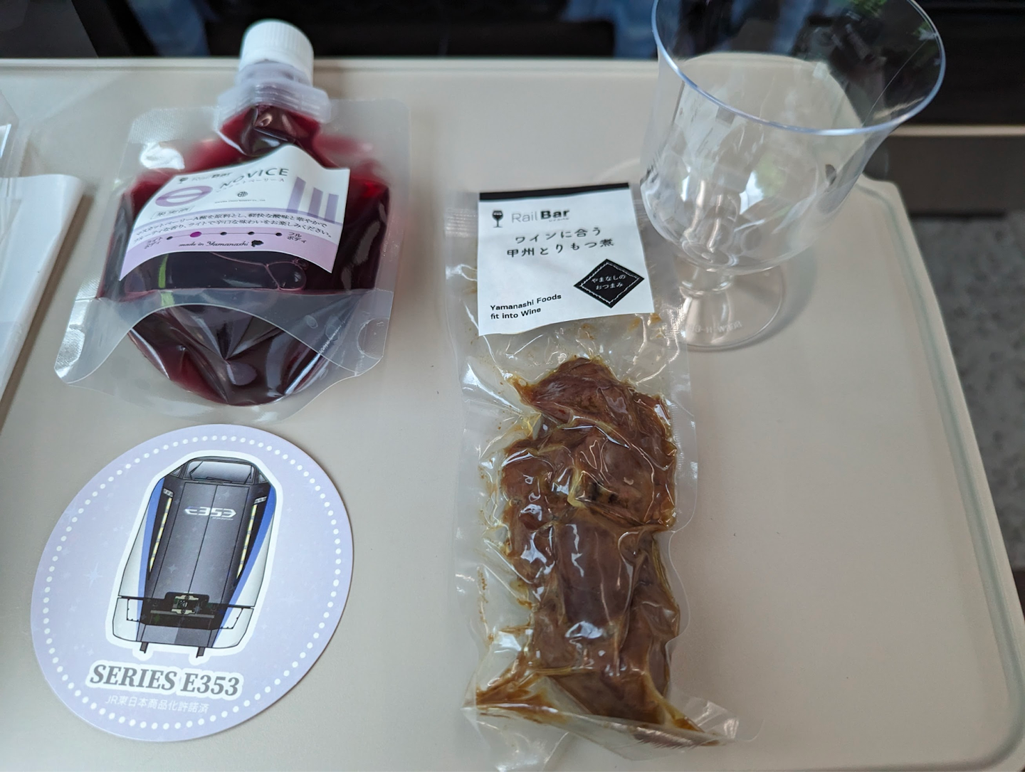 車内販売のワイン+おつまみセット=優勝の様子