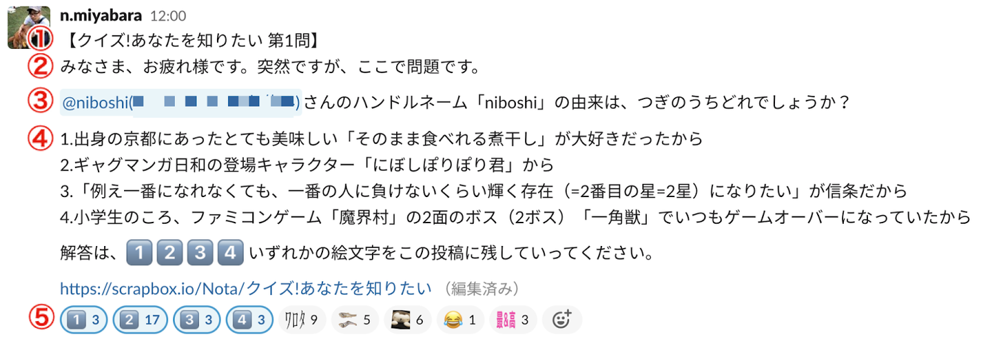 - 掲載場所:社内Slackの任意チャンネルに投稿