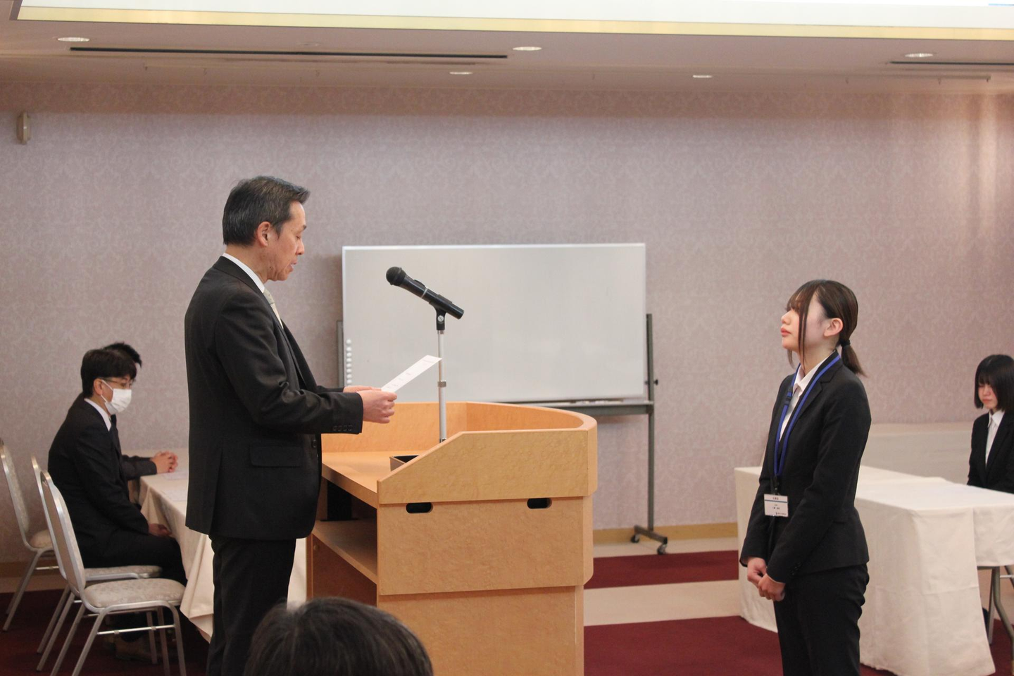 新入社員、一人一人に辞令を渡しました。