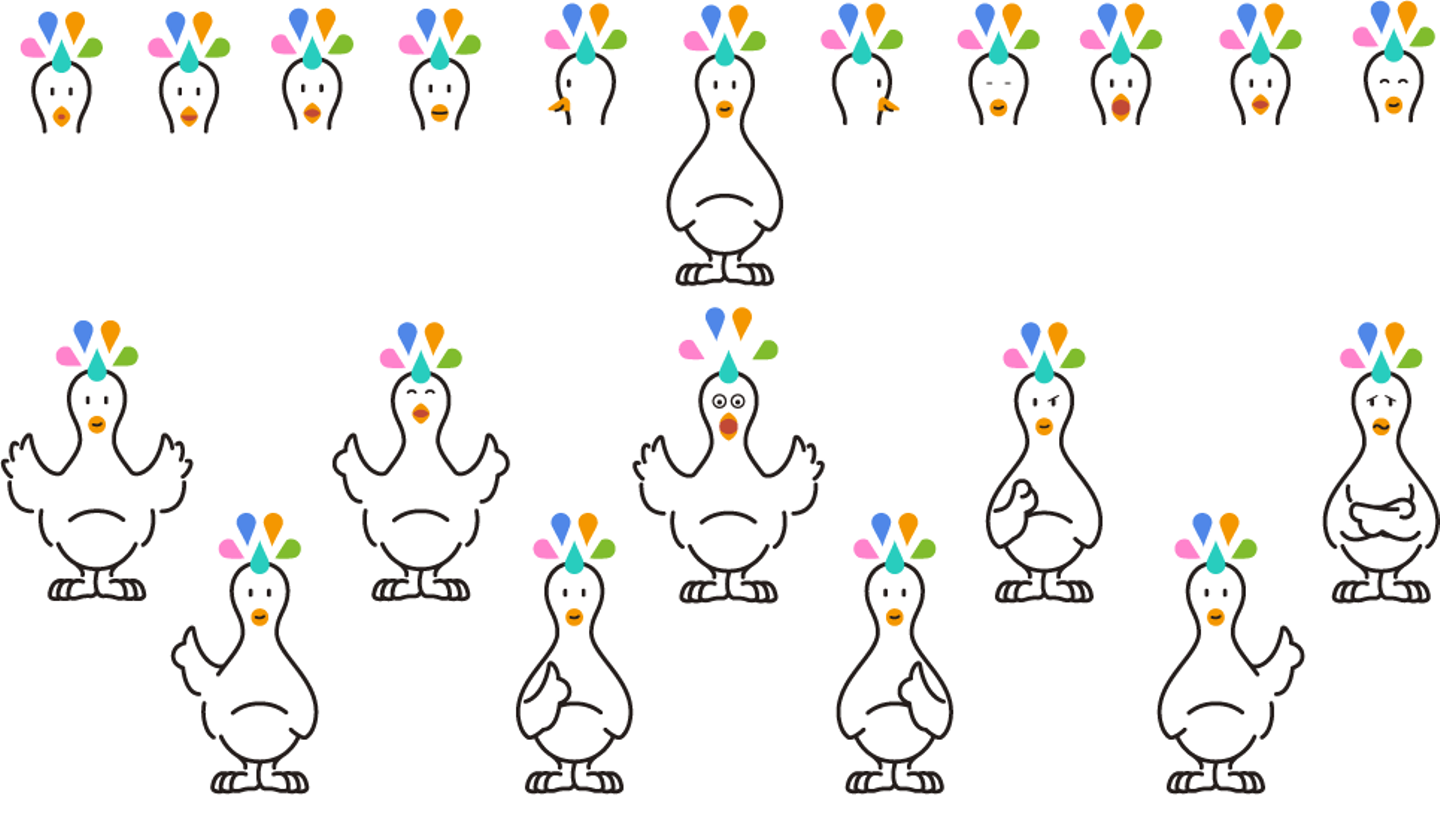 今回、コイツは口ばしなので、そんなに口の動きも作れず、、、5種類作って似た形は同じものを設定しています。