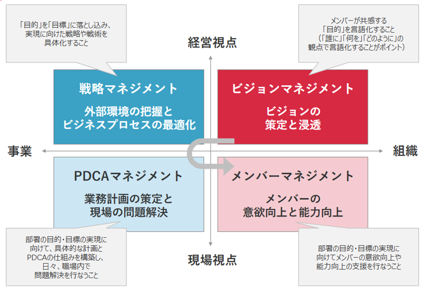 リンクアンドモチベーショングループでは、マネージャーという職に以下の4つの役割を求めています。
