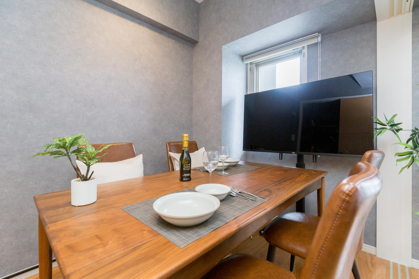 ダイニングテーブルもあり、皆様広々とゆっくりとお過ごしいただくことができると思います。