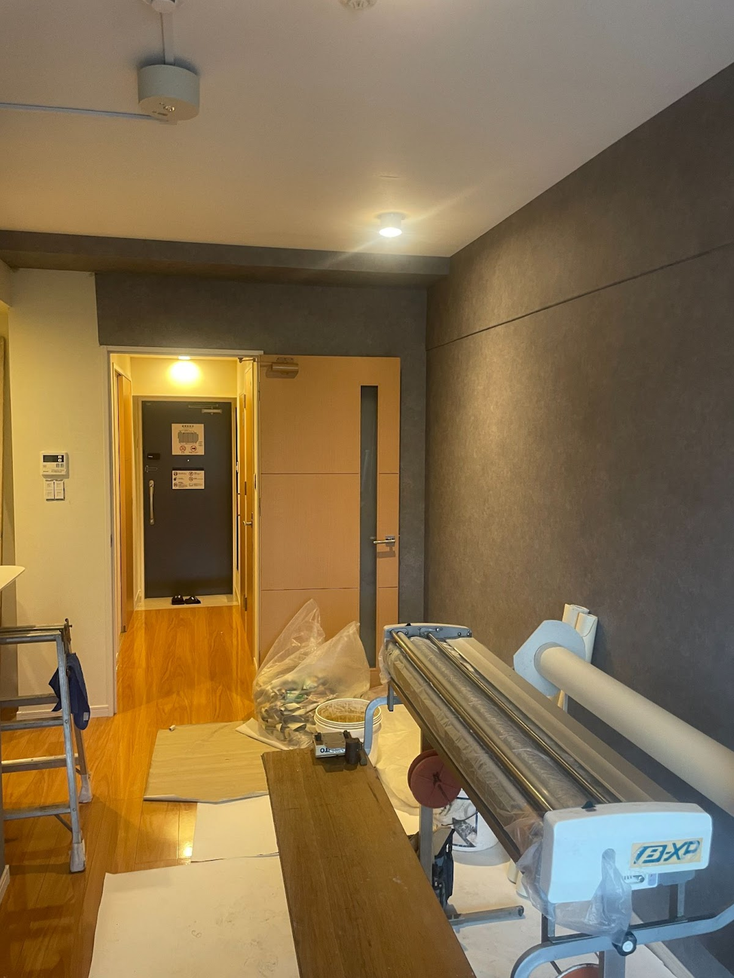 家具を搬出し、まずは壁紙の張替を行い