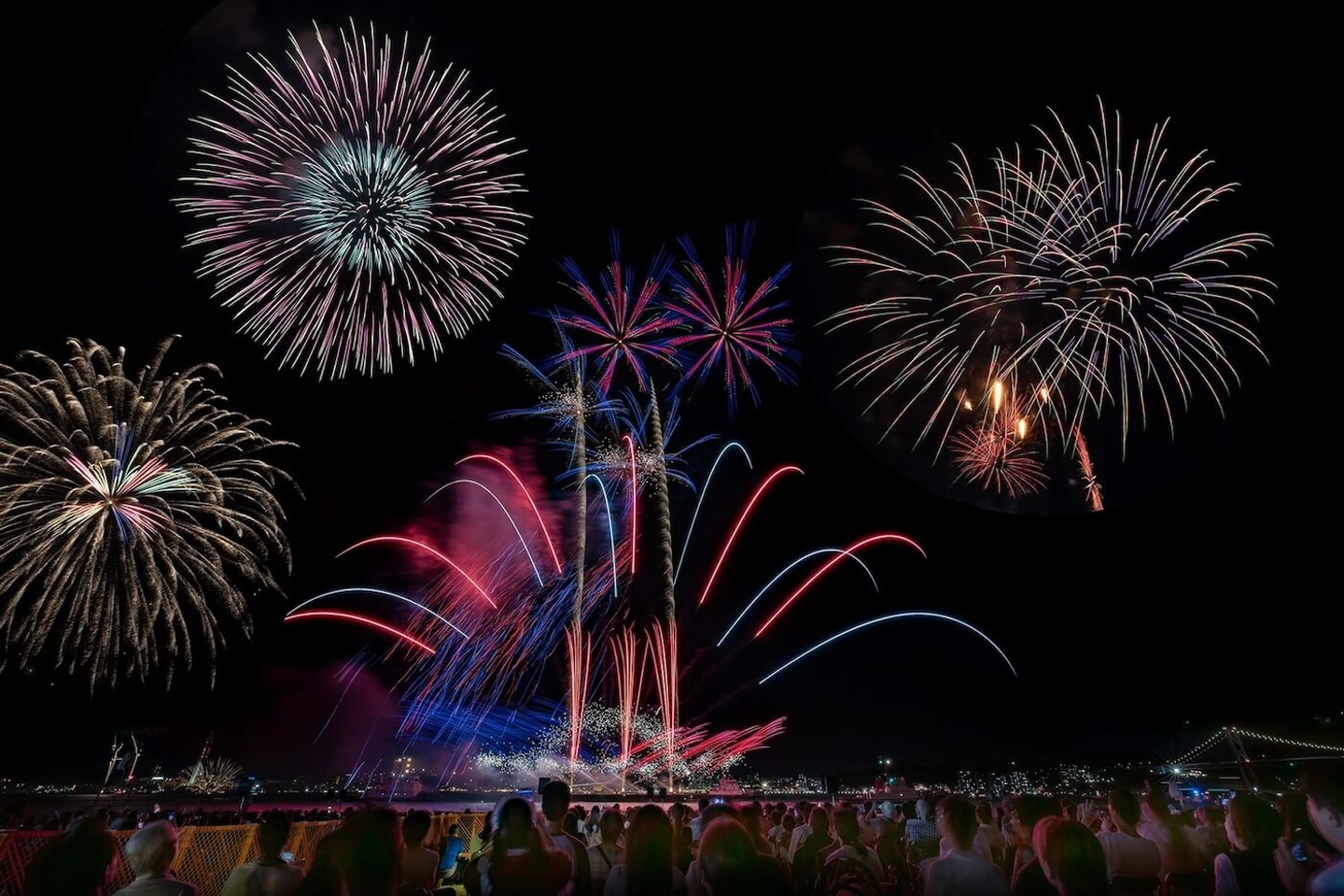 ②関門海峡花火大会|関門海峡の夜景と花火のコントラストにうっとり!